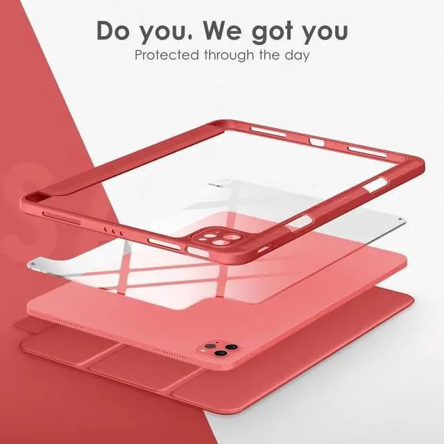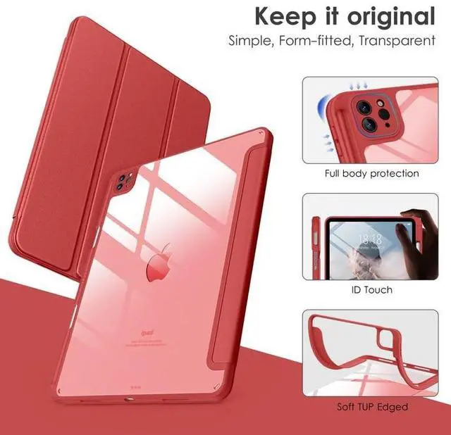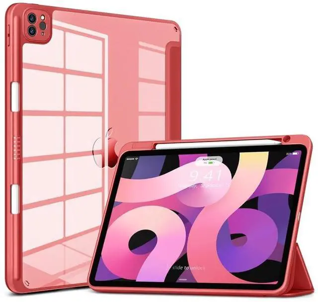 VIKESI for iPad Pro 11 Inch 4th/3rd/2nd/1st Generation Case, iPad Air 11-inch / 5th / 4th Generation Case with Clear Back,Pencil Holder,Auto Sleep/Wake,Camera Protection,Red