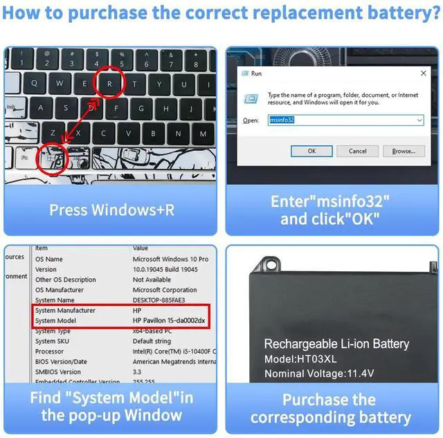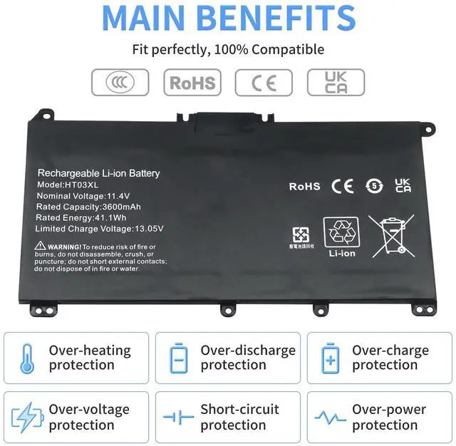 ^^ Packaging and Assistance: The package contains 1 * HT03XL battery and 3 * screws of different sizes. We offer a 30-day return and exchange service. If you need assistance with replacing the battery of your laptop, please visit our product details page. To ensure your usage experience, our batteries are in sleep mode before reaching you. To fully activate the battery, you need to charge it once after replacing the battery. This will fully activate the battery.