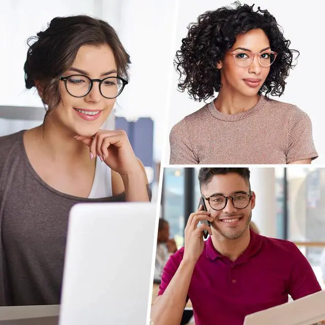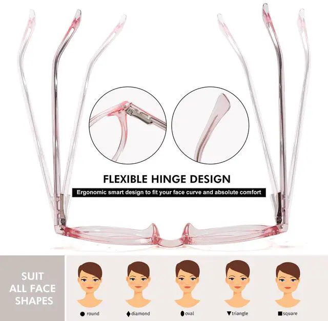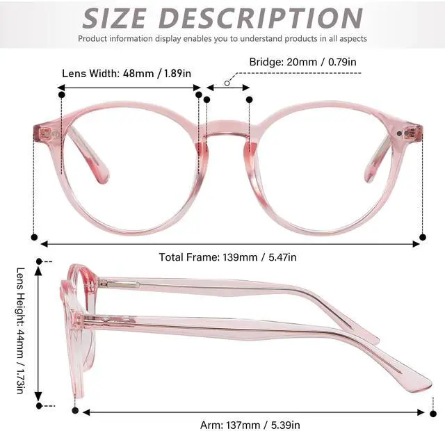 Blue Light Blocking GlassesBlue light glasses effectively filter harmful blue ray, relieve visual fatigue, dry eyes, headaches, and make you sleep better. ^^ Lightweight and ComfortableThis blue light glasses for women and men use lightweight brackets, integrated nose pads and flexible spring hinges to make you feel more comfortable. If need, you can change your lenses with the help of an optometrist. ^^ FashionThe blue light blocking glasses are designed with a large round frame and are suitable for most face shapes. The pin is added to the leg of the mirror, which is fashionable, high-end and sturdy.