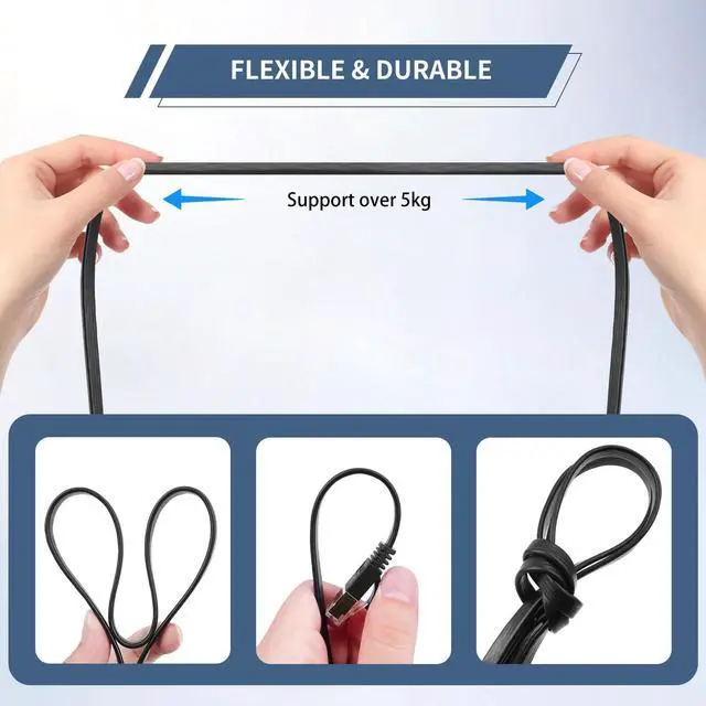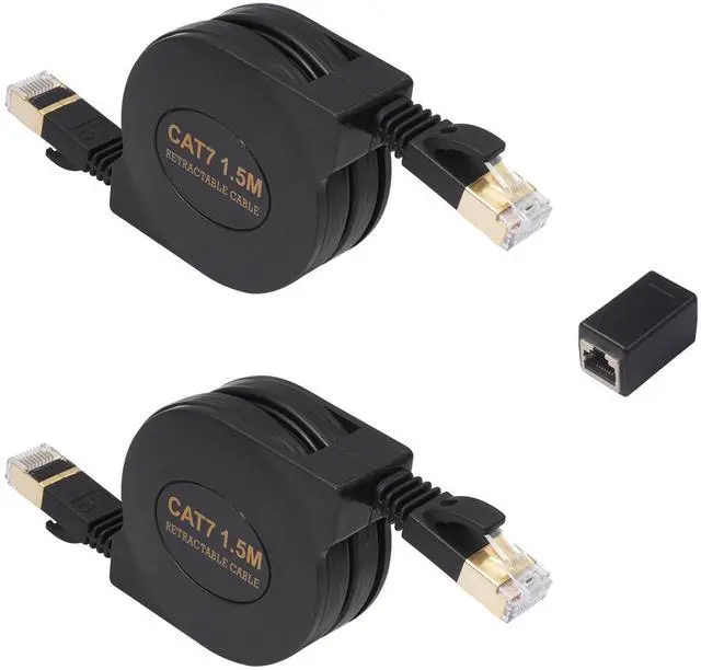 Ethernet Cable: 4.9FT of High-Speed, Tangle-Free Connectivity. Experience the ultimate convenience with our retractable CAT7 Ethernet cable. This innovative flat cable design and automatic retraction mechanism make storage and portability a breeze, perfect for travelers, office use, or home networks. Engineered for peak performance, this CAT7 cable supports blazing-fast data transfer speeds, ensuring a stable and reliable connection for online gaming, 4K streaming, and large file downloads. The durable RJ45 connectors provide a secure fit. The retractable feature keeps your space organized, while the flat cable easily slides under carpets or doors. Package includes one 4.9FT retractable Cat 7 Ethernet cable. Enjoy peace of mind with our reliable performance guarantee.