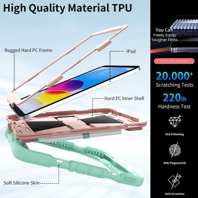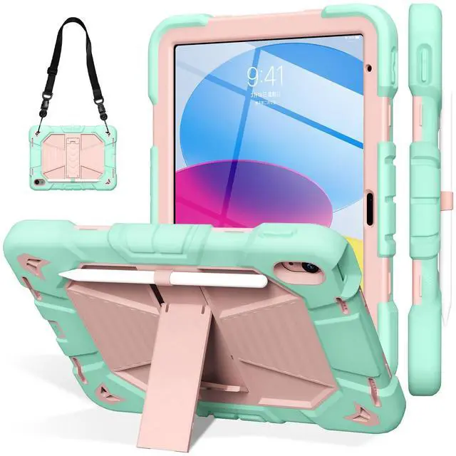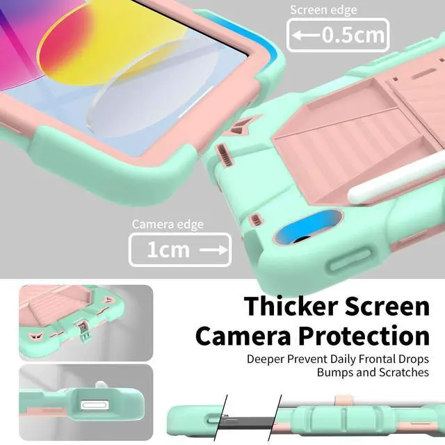 Inch (2022) (Models: A3356/A3355/A3354/A2777/A2757/A2696). Ensure your device model matches for a perfect fit. ^^ Military-Grade Triple-Layer Shockproof ProtectionEngineered with heavy-duty shockproof PC, flexible silicone, and reinforced corners, this rugged cover meets military-grade drop-test standards (MIL-STD-810G). The built-in screen protector and raised edges guard against scratches, drops, and impacts, ensuring ultimate durability for outdoor adventures or kids active lifestyles. ^^ All-in-One Functional DesignFeatures a built-in kickstand for horizontal/vertical viewing, a dedicated pencil slot for Apple Pencil storage, and a detachable shoulder strap for easy portability during travel or outdoor use. ^^ Precise Cutouts & Full AccessibilityStrategically designed openings provide effortless access to all ports, buttons, and cameras without removing the case. Ideal for daily use, gaming, or creative work. ^^ Gift-Ready Packaging & Reliable Customer SupportThis stylishly packaged protective cover makes a practical gift for birthdays or holidays. If you have any questions about this ipad 10th generation case for kids, please feel free to email us, we will provide you with the fastest and best solution!