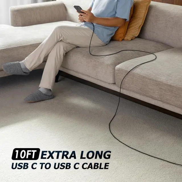 USB C Cable: This USB C long cable 10 ft enhances its elasticity while being reinforced, after more than 30000 bending tests, the USB C to USB C Cable has achieved durability upgrades, preventing cable bursts, and providing additional protection. It's a braided cable with very well constructed USB C connectors ^^ USB C Charger Cable with