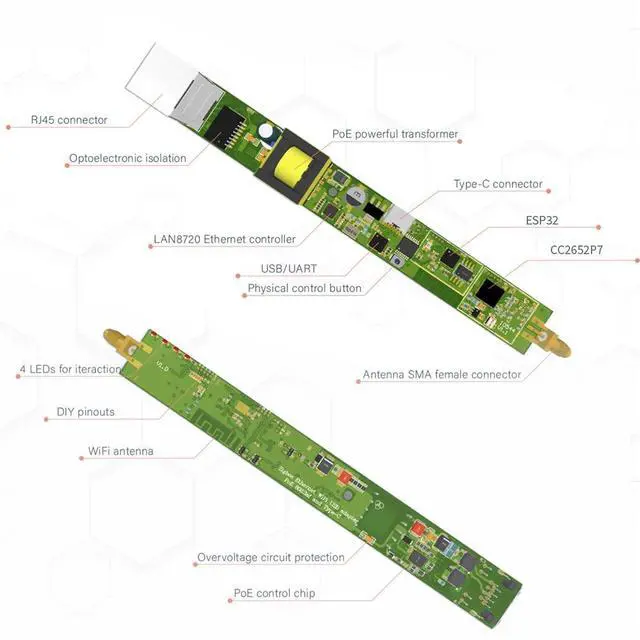 SLZB-MR1: A multi-radio, dual-antenna Zigbee and Thread coordinator based on the CC2652P7 and EFR32MG21 modules. It integrates Zigbee and Thread in a single device. Can be used as a Zigbee 3.0 gateway in the open source automation platforms Zigbee2MQTT, Home Assistant, ZHA. ^^ 2. Works in both modes LAN and USB. Mode can be changed in firmware or via button. ^^ 3. Can add as many Zigbee coordinators to one server as you want. So you can easily cover different rooms, buildings and connect them to the same Home Assistant instance. ^^ 4. You can power the device through POE or type-C. ^^ 5. There are two separate antennas, one for each SoC, and both are equipped with power amplifiers, allowing them to transmit at power levels of 20+dBm. The antennas themselves have a gain of 5+dBi.