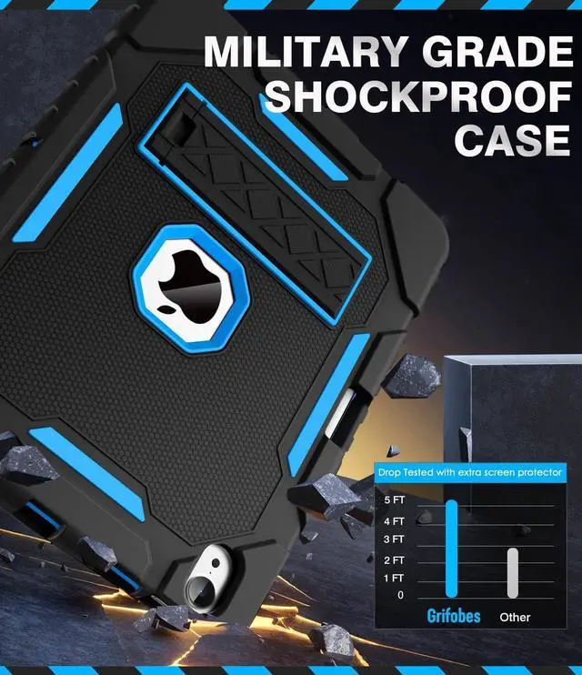 Grade Drop Protection: Grifobes for iPad case air 6th/5th/4th generation is made of high quality flexible Silicone and durable hard PC provides a great Protection to your tablet against scratches and accidental drops, bumps, shock ^^