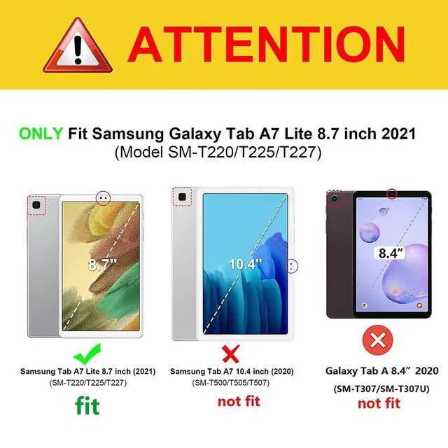 fits this model: for Samsung Galaxy Tab A7 Lite 8.7 inch 2021 Release model SM-T220/ T225/ T227 ( 8.7" Display); NOT compatible with other tablet models.