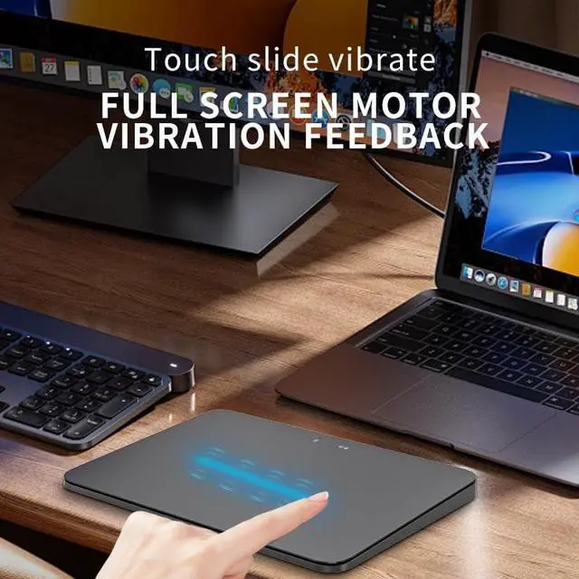 It supports three connection modes: Bluetooth, 2.4GH z wireless, and USB-C wired, allowing you to pair three devices at the same time and switch quickly. It is perfectly compatible with Windows 8 and above, Mac OS 10.11, iOS 13.4 and other systems to meet the needs of different scenarios. Wide touch for smooth operation It adopts a 160x115mm large-size glass touch panel, which supports Precision Touch (PTP), which has a fast response speed and a smooth feel. Built-in a variety of system preset gestures, such as two-finger zoom, three-finger switching application, four-finger display desktop, etc., can be used directly without complex settings. Freely switch between multiple devices Easily connect to computers, tablets, mobile phones and other devices, and seamlessly switch between different devices with a short press of the mode button, especially suitable for multi-screen office and cross-platform operators. User-friendly design Equipped with physical left and right buttons, it supports vibration feedback function (can double-click the switch), and the Type-C interface is convenient and fast to charge. The ultra-thin body is only 5mm and weighs as little as 147g, making it easy to carry.