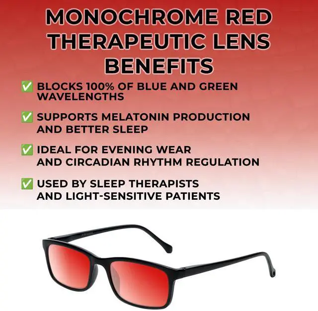 Monochrome Amber Brown Lenses: Specialized for red light therapy, enhances visuals & supports relaxation through precise wavelength transmission. Each lens type is designed to meet specific chromotherapy needs, making these glasses a versatile solution for glare reduction, mood enhancement, and light sensitivity management. Explore the harmony of function and therapy with our innovative eyewear. It comes with Medpspex Carrying Case and Cleaning Cloth