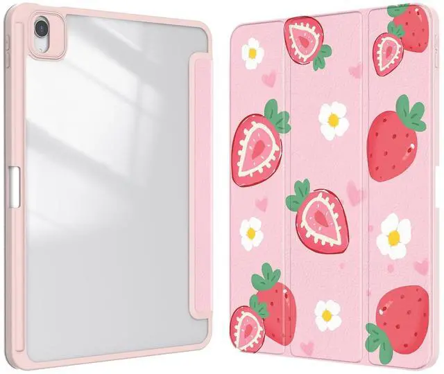 Xkladz Case for iPad Air 11 inch M3 (2025) / M2 (2024), iPad Air 5th / 4th Generation (2022/2020) 10.9 inch, Case with Pencil Holder, Clear Back Cover Cute Design Strawberry