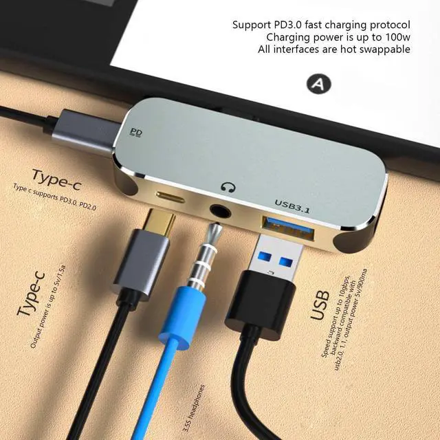 Hot Swappable: The type C hub has 3.5 headphone port design, and all interfaces of the type C hub are hot swappable, regardless of the order, and they can work normally after connection ^^ PD