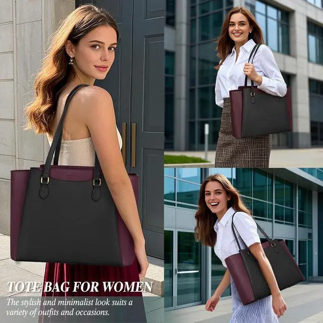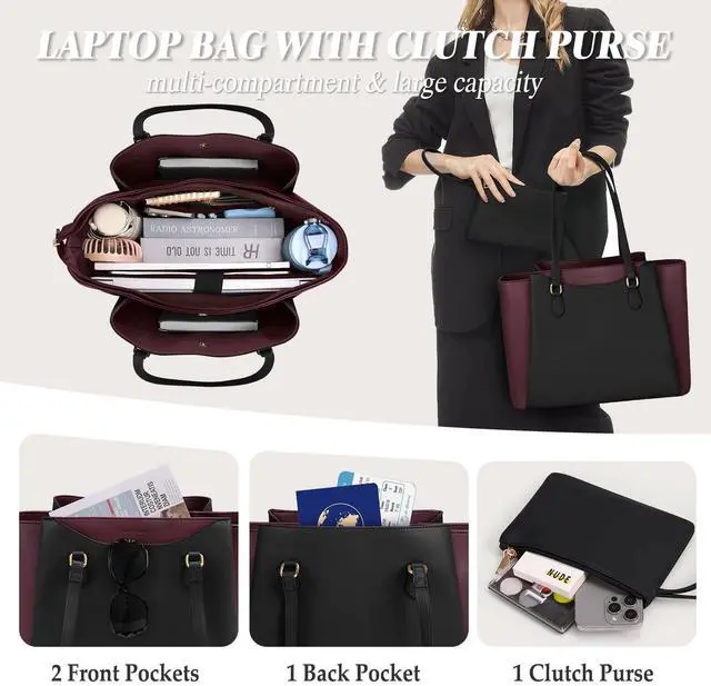 LAPTOP BAG WITH CLUTCH PURSE: This laptop tote bag also comes with a clutch purse to hold small essentials such as phones, keys, cards, glasses, or cosmetics. The compact size make it easy to hang from your wrist, or slip into the large laptop tote. Designed to be stylish and practical, this office bags for women is perfect for every woman who needs to carry a decent amount of stuff. This well made and beautiful tote bag for women is also a great gift for mom, wife, daughter or friend.