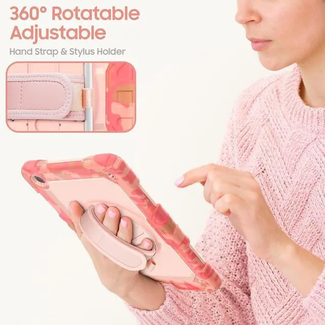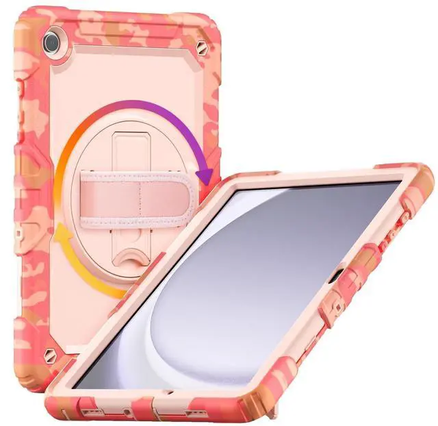 Gylint Case for Samsung Galaxy Tab A11+/ A11 Plus 11" 2025 / A9+/ A9 Plus, Heavy Duty Shockproof Protective Case with Screen Protector, Hand Strap, Shoulder Strap, 360 Rotating Stand Camo Pink