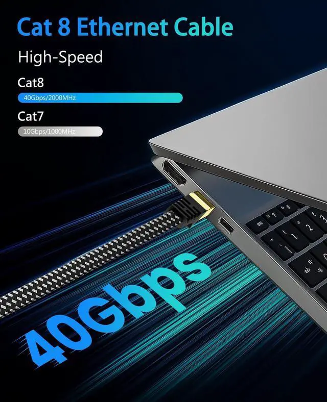 Cable CAT 8: ARISKEEN Cat8 Ethernet cable provides up to 40 Gbps data transmission speed and 2000 MHz bandwidth ^^