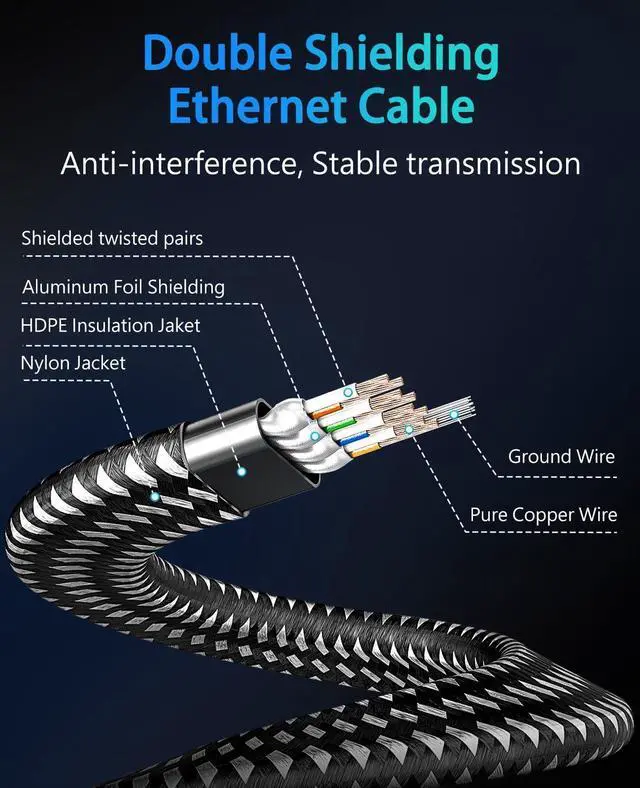 Braided Design: Double braided nylon exterior make Cat8 gigabit ethernet cable more sturdy ^^