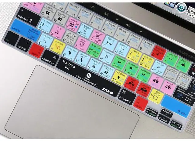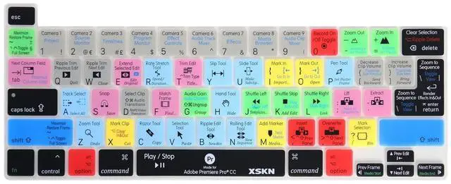 XSKN Shortcuts and Language Series Silicone Keyboard Cover Skin for New MacBook Pro 13.3 inch 16 inch with Touch Bar and Touch ID - A2251 A2289 A2338 M1 A2141 (US EU Common Version, Premiere Pro CC)