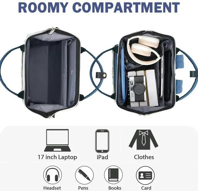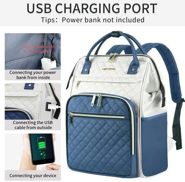 DescriptionEMPSIGN Women's Laptop Backpack, a sleek and functional choice for women who need a blend of style and utility. With ample expandable storage, this backpack easily fits your laptop and daily essentials, safeguarded by hidden pockets and RFID-blocking technology. The padded straps and leather-accented handles ensure comfort, while a luggage strap and USB charging port add to its convenience for the on-the-go woman. Durable and water-resistant, this backpack is designed for versatility, suitable for work, travel, or casual outings, making it the perfect laptop backpack for women who value both fashion and functionality.