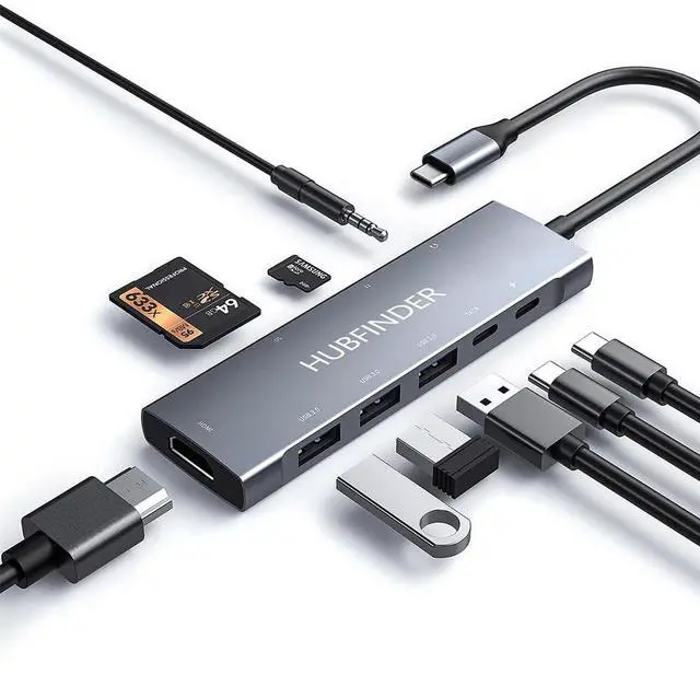 9 in 1 USB C Hub The intelligent USB C Adapter has perfectly combined all the functions you need. USB C to HDMI hub equipped with USB 3.0 x3, USB-C Data port, 4K@30 HDMI, SD/TF Card Adapter, 3.5 mm headphone jack and Up to 100W Type C Power Delivery charging port. ^^ 4K video USB-C to HDMI Adapter mirror or extend your screen with USB C hub HDMI port and directly stream 4K UHD @ 30Hz or full HD 1080P video to HDTV, monitor or projector. ^^ 100W Power Delivery SupportedCompatible with USB-C Power Delivery to provide high-speed pass-through charging to your MacBook Pro/Air or and other USB c devices at up to 85W (The hub itself only consumes 5W-15W).