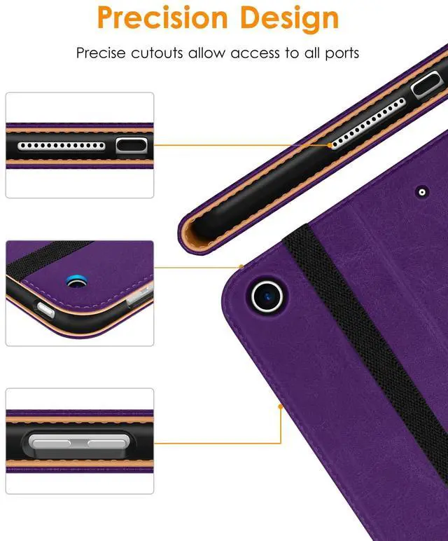 DTTO for iPad 9th/8th/7th Generation 10.2 Inch Case 2021/2020/2019, Premium Leather Business Folio Stand Cover with Apple Pencil Holder - Auto Wake/Sleep and Multiple Viewing Angles, Dark Purple
