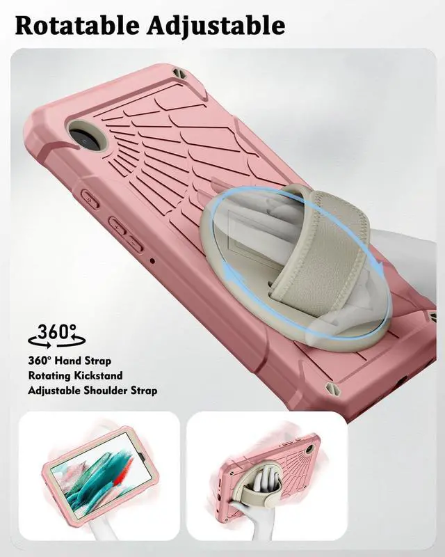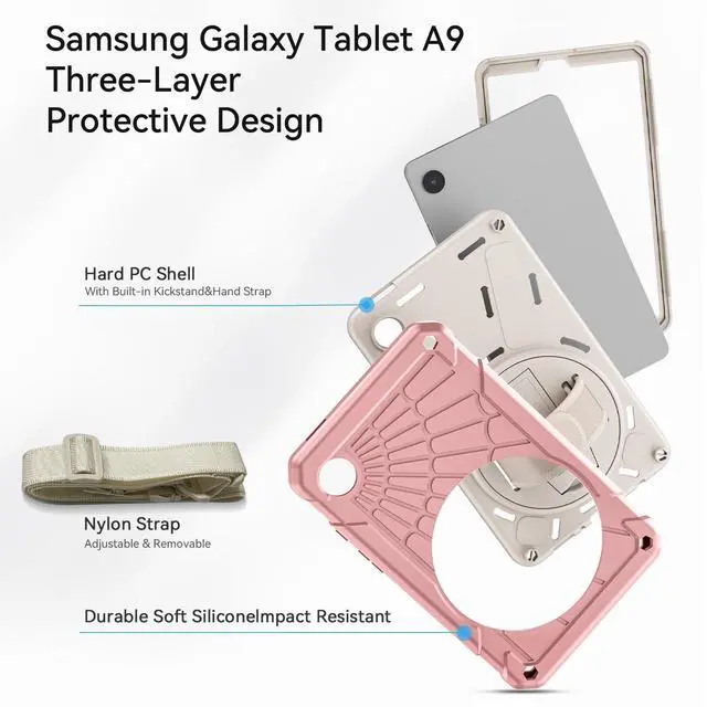DETACHABLE SHOULDER STRAP: The hand strap is convenient for you to use the Samsung Galaxy Tab A9 with one hand when you show it to others. The detachable and adjustable shoulder strap can help you carry your A9 tablet more securely during hiking, traveling, and other outdoor activities.