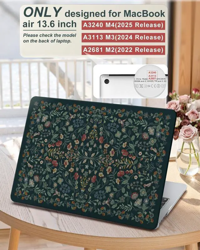 iCasso Artistic Floral MacBook CaseTailor-Made for apple MacBook air 13 inch caseFinally found what youve been searching for? Urban professionals battling subway commutes, fearing scratches Business elites want to show professionalism and confidence at the conference table Designers/illustrators craving attention in coffee shops Detail-obsessed souls seeking "couture" for new MacBook Air Quality-driven lives tired of cheap plastic shellsFit Guarantee (30-Second Avoid-Mistakes Guide)Locate your
