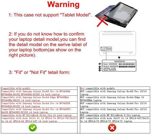 Warning: NOT compatible with Samsung Galaxy Book4 Edge 16 NP960XMAA Laptop and NOT compatible with Samsung Galaxy Book4 Pro 15/16 Laptop and NOT compatible with Samsung Galaxy Book3 Pro 15/16 Laptop and NOT compatible with HP EliteBook X G1a/EliteBook Ultra 14 G1i/EliteBook X 14 G1i/EliteBook X Flip 14 G1i/EliteBook X G1a Laptop {{Warning:Most of returned because of choosing wrong model,please confrim your laptop model}}.