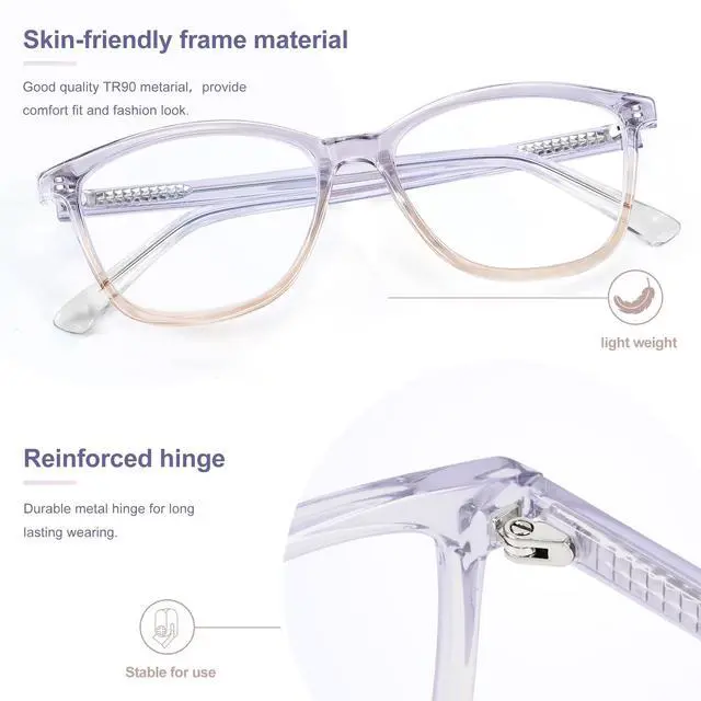 Wearing blue light glasses will improve sleep, help you have good night! 3, Reduce Glare&UV Protection-Protect the eyes from ultraviolet radiation and block UV light for it can filter out sunlight reflected glare when you go out! 4, Reduce Load & Stylish Decoration-Quality frame, flexable, lightweight. Exquisite workmanship with stylish square frame add unique charm to your daily outfit!