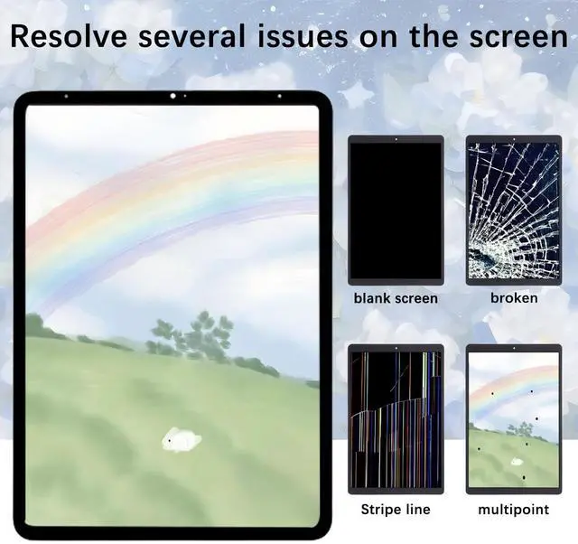 Adhesive tapeInstallation Tips: 1. If you have no experience with installing screens, it is not recommended to install screens directly. For installation, you can contact professional maintenance personnel. If you need help, please contact us. We will respond to you as soon as possible. 2. It is recommended to turn off the power supply before installation. Avoid tablet failures. 3. when replacing the LCD components. Please select the correct installation tool. And put them in the right place. Note that different screws are not suitable for all cases. Using the wrong screw can easily damage the screen. 4. The screen of the tablet is a glass product, please place the screen carefully when unpacking or installing. Do not push objects to the edge or corner of the screen. It's easy to break. Screen damage during installation that does not fall within our after-sales area. 5. Please do not bend the LCD cable too much. Over 90 can cause a black display. 6. If after installation lines appear on the screen or the screen cannot be touched.