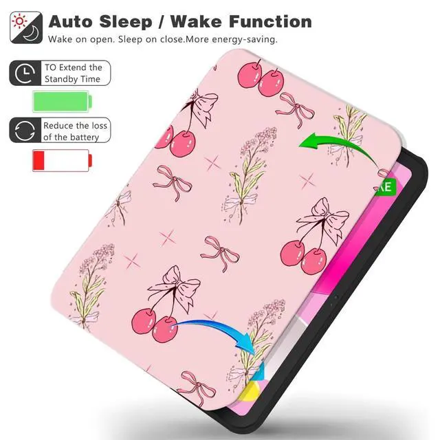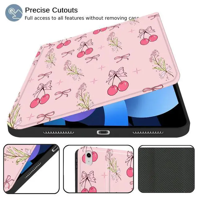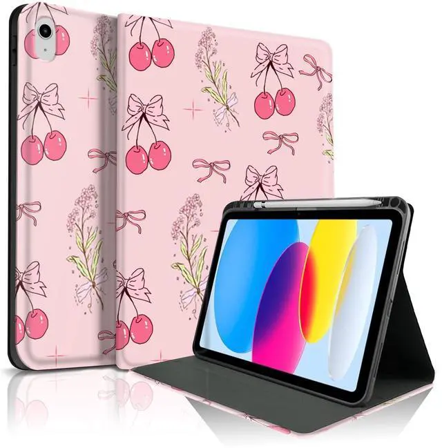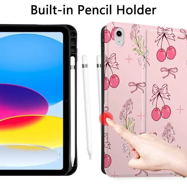 TopPerfekt Case for iPad 11th (A16) 11-inch 2025 / 10th Generation 10.9 -inch 2022, Cute Cherry Chic Stylish Aesthetics Design Protective Cover with Pencil Holder, Anti-Slip, Shockproof- Flower Cherries