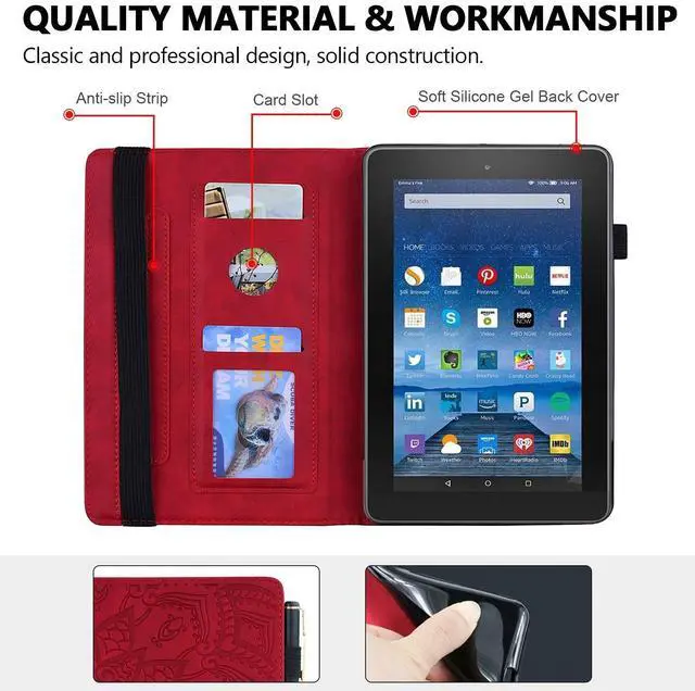 [Old Version] Fire HD 8 inch Tablet (8th/7th/6th/5th Generation-2018/2017/2016/2015 Release) Folio Case with Credit Card Slots, Elastic