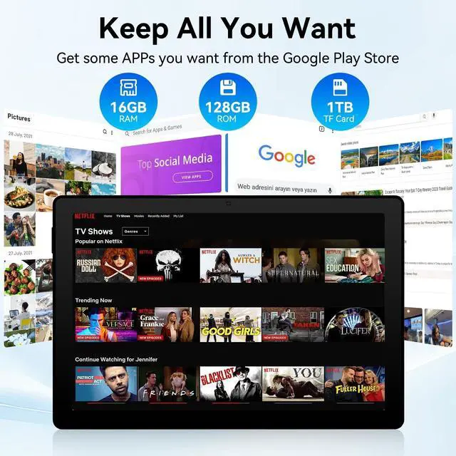 The tablet is equipped with automatic brightness adjustment and anti-blue light function to protect your eyesight, so that you can have a good time safer and more comfortable ^^ Adequate Memory - Tablet comes with 16GB RAM (4GB physical+12GB virtual) and 128GB ROM provide unparalleled speed and storage space. Expand up to 1TB TF card (not included). UGRIHACH tablet is GMS certificated and WidevineL1 certified, you can download some necessary applications from the Play Store and and enjoy crystal clear videos on the go ^^ Fast Connection Smoother Experience - UGRIHACH Android tablet comes with WiFi 6 ( 802.11 a/b/g/n/ax/ac), dual speakers and Bluetooth 5.3, and the tablet supports dual band WIFI for improved network stability and reduced network latency.
