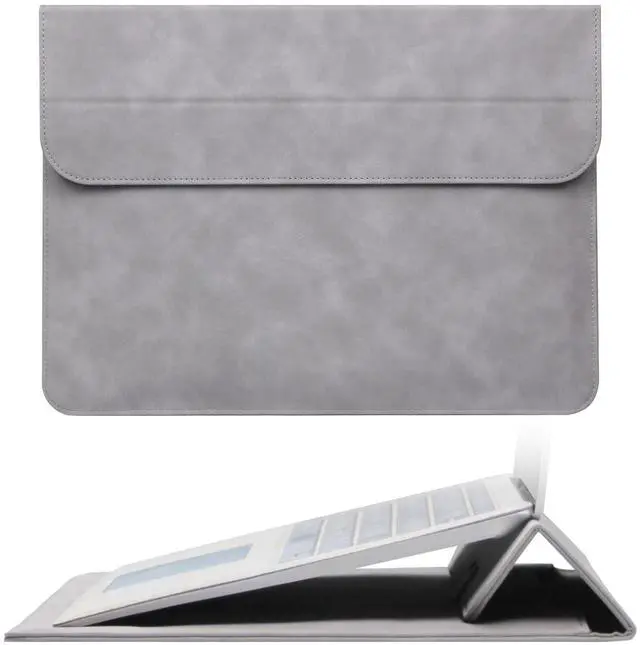 Megoo 15" Slim Laptop Sleeve PU Case with Stand for MacBook Air 15.3"/Pro 16.2", Samsung Galaxy Book 15.6", Microsoft Surface Laptop 7/6/5/Book 15.6", Carry Case for 15" 16" Chromebook Notebook(Gray)