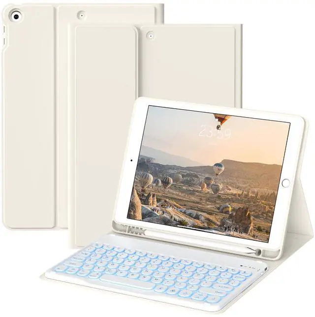 Note: Kindly verify your iPad's model before making a purchase by locating the model number (AXXXX) on the back of your iPad ^^ 7 Colors Backlit KeyboardThe iPad 9th/8th/7th Generation Keyboard Case features laser-etched illuminated keys and offers 7 LED backlighting colors and 3 brightness options for a comfortable typing experience even at night. You can choose your favorite color to enhance the visual enjoyment and make typing a relaxing and enjoyable experience ^^ Rechargeable & Long Life BatteryOur keyboard case for the 9th/8th/7th Gen iPad, featuring a built-in high-capacity battery, offers enhanced energy efficiency and reduced power consumption. It comes with a Type-C charging cable that can be fully charged in 2 hours without the need to replace the battery, ensuring that you can continue to work for up to 230 hours ^^ Magnetic Detachable Backlit KeyboardThis iPad 10.2 -inch case with keyboard features a magnetic design that holds the keyboard securely in place. With an easy, fast and stable connection to IOS, Windows and Android via Bluetooth, it's perfect for working, typing, editing or watching videos, dramatically increasing the productivity of your iPad ^^ Buit-in Pencil Holder & Sturdy TPU MaterialThe keyboard case compatible with the 9th, 8th, and 7th generation iPads boasts a handy pencil holder on its left side, allowing for effortless storage and retrieval of your pencil (Pencil not included).