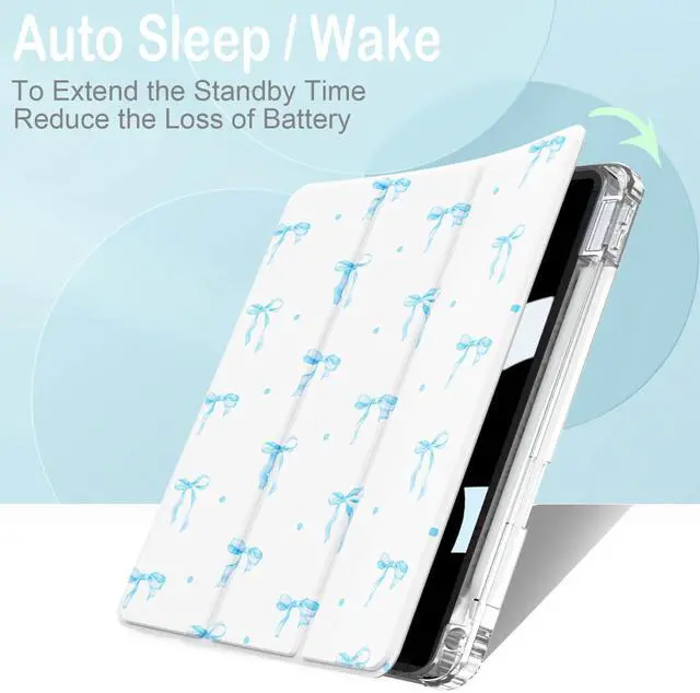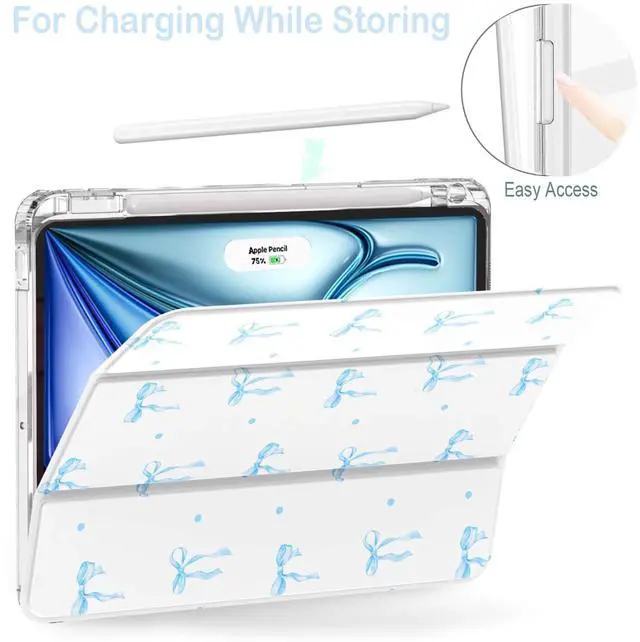 Feams Slim Case for iPad Air 11-inch M3 2025 / M2 2024, iPad Air 5th Generation 2022 / iPad Air 4th Generation 2020 10.9 Inch Case Clear Back with Pencil Holder & Auto Sleep, Blue Bow
