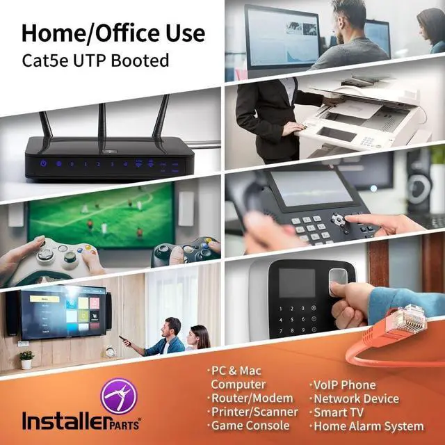 Cat5E Ethernet Patch Cable: The Installerparts Cat5E patch cable connects common devices on A Local Area Network (LAN), such as laptops, PCs and Mac, servers, printers, modems, routers, switches, security cameras, and more. ^^ High Quality 100%