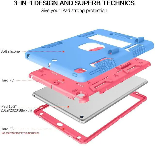Release (Model number: A2197/ A2198/ A2200). WILL NOT fit any other phone models. ^^ Advanced 3 Layer ProtectionPremium hybrid hard Polycarbonate (PC) + soft Silicone rubber + open front hard Polycarbonate (PC) with fine craftsmanship effectively protect your 10.2" 2021 9th / 10.2 2020 8th / 10.2 2019 7th from drops, shocks, impacts and scratches during daily use, safe for kids. ^^ Functional Kickstand & Pencil Holderthis shockproof tablet case has built-in a sturdy kickstand, it can be used for vertical (portrait) stand & horizontal (landscape) stand, you can adjust for optimal viewing and typing positions based on your needs. Designed with a pencil holder easily to carry your Apple pencil with your device.