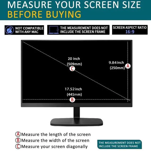 Please verify your screen width and height before ordering: 2 Pack 20 Inch Anti Glare Desktop Monitor Screen Protector for Universal Diagonal 20 with Aspect Ratio 16:9 Standard/Curved Monitor &Touchscreen, Eye Protection & Anti Scratch Filter ( 17.52 Inch W x 9.84 Inch H) ^^