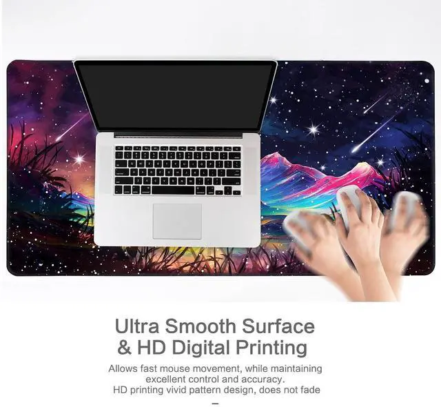 Premium MaterialMade of long-lasting Micro-Wave Cloth Rubber, which protects your desk from daily scratches, heat, stains and spills. Original HD Printing PatternAdvanced HD Printing Technology with pretty Meteor Mountains Pattern, no fading, support to long-lasting using. Non-Slip Rubber BaseNatural soft and dense non-slip rubber base keeps this mouse pad firmly grip in the desktop, no worry about other things while gaming, typing or writing. Durable Stitched EdgesNot fray, deformation and degumming in prolonged use. The seams at the edge are flat, comfortable for your wrists and hands.
