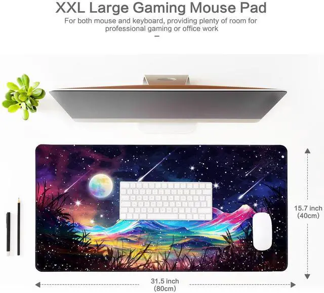 Water Resistant CoatingUnique material ensure your mouse mat safe from water, drinks, ink and other liquid. Easy to clean, just wipe with a damp cloth or paper after using. Widely ApplicationCan be used as desk mat, table mat, keyboard pad, gaming mat, dressing table mat. Specially design for the game lover, designer, student teachers, readers and so on. Ideal gifts for men, women, kids, teens, boys, girls, friends. Extended Large Size 31.5" x 15.7" size, enough room space to fit your gaming mouse, full-size keyboard, and other desk items.
