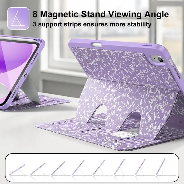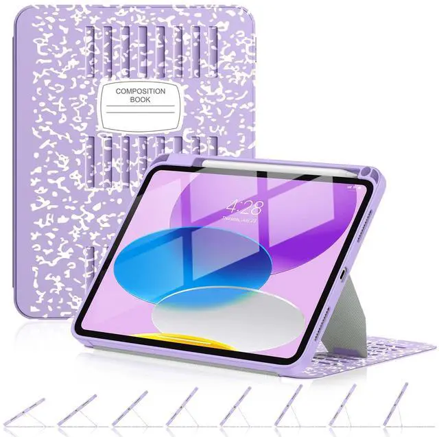 ModelsComposition notebook iPad case designed for new iPad (A16) 11th generation 11 inch/10th generation 10.9 inch released in 2025/2022. Not compatible with other iPad models(ipad 10.2 9th/8th/7th Gen) ^^ MaterialMade of flexible silicone back & TPU cover, iPad (A16) 2025/2022 case provides full protection against shocking & scratching for your new iPad 11th/10th generation 2025/2022 ^^ Multi angles8-angles magnetic stand shell creates different angles for viewing or typing, ensures stability and convenience; magnet secures the iPad 11th/10th generation case closure, easy to snap on and off ^^ FunctionBuilt-in pencil holder makes iPad A16 11th/10th generation 2025/2022 case convenient to carry and better protect your Pencil.