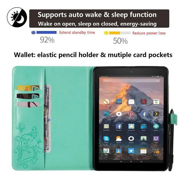 Pockets: Elastic pencil holder for your stylus/pen; book wallet sleeve folding case has card slots convenient for storing your cards, cash, photos. 6.