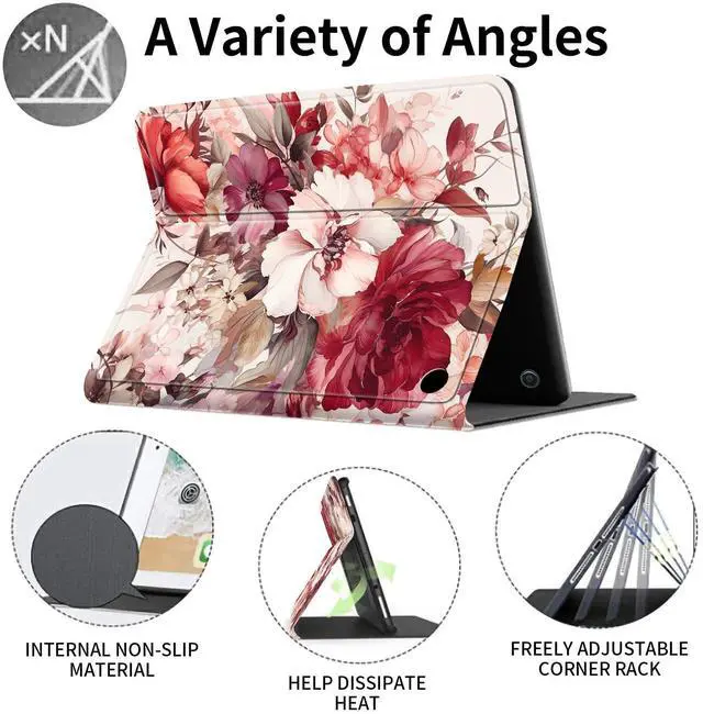 Material: PU Leather + TPU for Fire HD 10 Tablet Case 2019 with Adjustable StandAllows to set multiple horizontal standing angles for viewing, no angle limitAnti-Slip Design on the Cover Lining Can Help your Tablet Stand Support Stably for Fire HD 10 Tablet (9th/7th/5th Generation, 2019/2017/2015