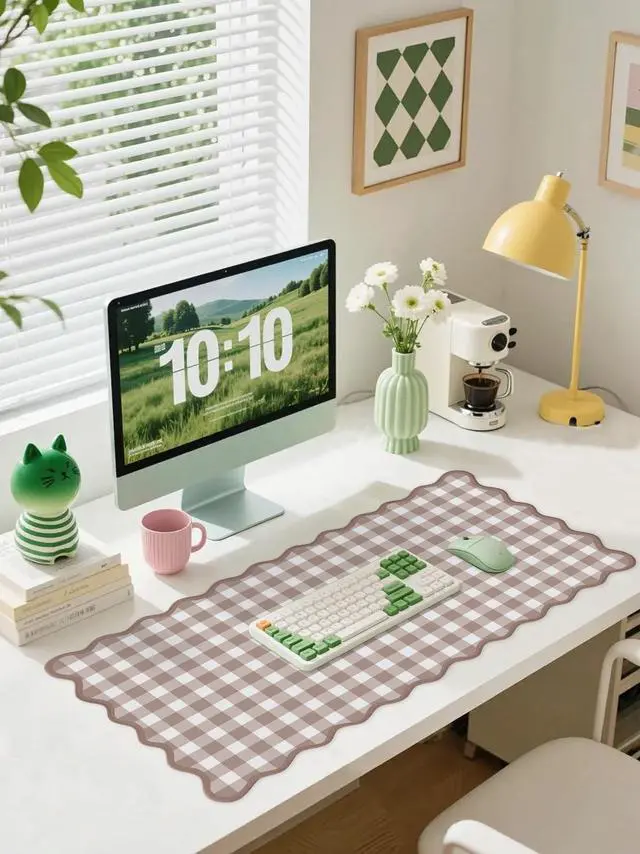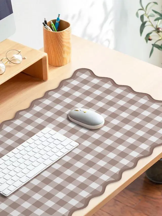 Stylish Brown Gingham Desk Mat: Featuring a charming gingham pattern, this xxl large mouse pad adds a touch of playful elegance to your desk. The classic checkered design is both timeless and trendy, making it a perfect match for any home or office decor style. ^^