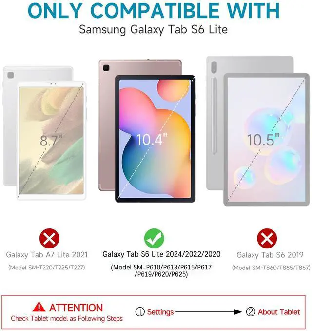 Fits in Galaxy Tab S6 liteThis protective case is only compatible with Galaxy tablet S6 lite 10.4 -inch (2024/2022/2020). With precise cutout design, you can easily access all buttons and switches. Please double check your device's model before purchasing. SURITCH provide one-year warranty, if you have any needs or problems, please contact us and we'll work to resolve your issues. ^^ Built-in Screen ProtectorOur tablet case comes with a front cover with built-in screen protector, keep your display from being scratched without affecting the touch sensitivity. It snaps on easily and fits seamlessly, leaving no room for air bubbles, lint, hair, moisture, or dust to hide, and ensuring a clean and crystal-clear display.