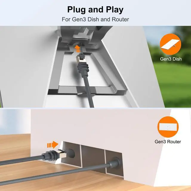 Whether you're in the middle of a storm or sweltering summer heat, this replacement cable for starlink gen 3 will keep you connected. And both ends are equipped with protection caps, effectively avoiding oxidation or damage before and after use. ^^ Perfect Craftsmanship Cable for starlink v3/mini uses welding connectors with gold plated at both ends instead of normal crimping connectors, improve the conductivity of the cable and resist oxidation, provide highest fidelity for long distance data transmission and stable power supply for your starlink dish without voltage drop. ^^ Convenience to Use Easy installation, Just plug in to use, easy to install, without any complicated setting up.