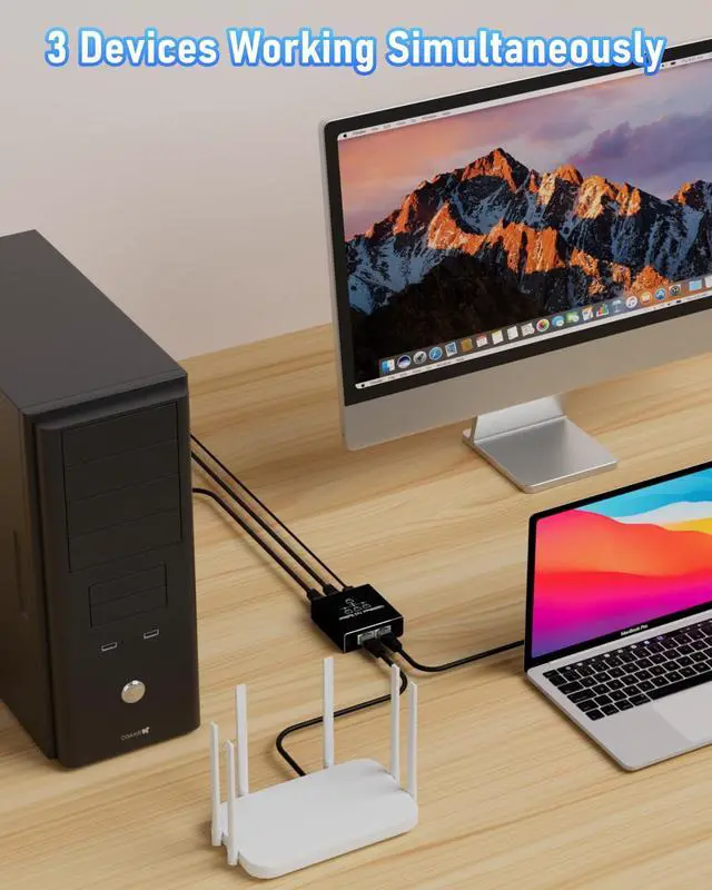 Gigabit Ethernet SplitterEthernet cable splitter supports data transmission up to 1000Mbps, ensuring fast and stable network performance for all connected devices ^^ RJ45 Splitter 1 to 3Connecting the Ethernet splitter into 3 separate, reliable outputs, Gigabit Ethernet speeds are perfect for home offices, gaming setups, and small business networks ^^ Wide Cable CompatibilityEthernet splitter works with Cat5, Cat5e, Cat6, Cat7, and Cat8 Ethernet cables, offering versatile connectivity for various devices ^^ USB-C Powered for StabilityThe Ethernet switch comes with a USB-C power cable for continuous power supply to ensure uninterrupted high-speed data transmission.