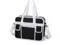 DESIGN: Stylish pink and white canvas messenger bag featuring contrasting white trim and multiple exterior pockets for organization ^^