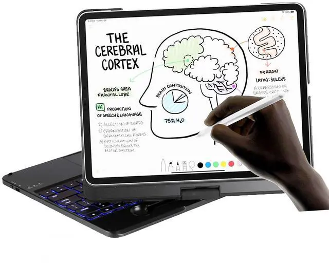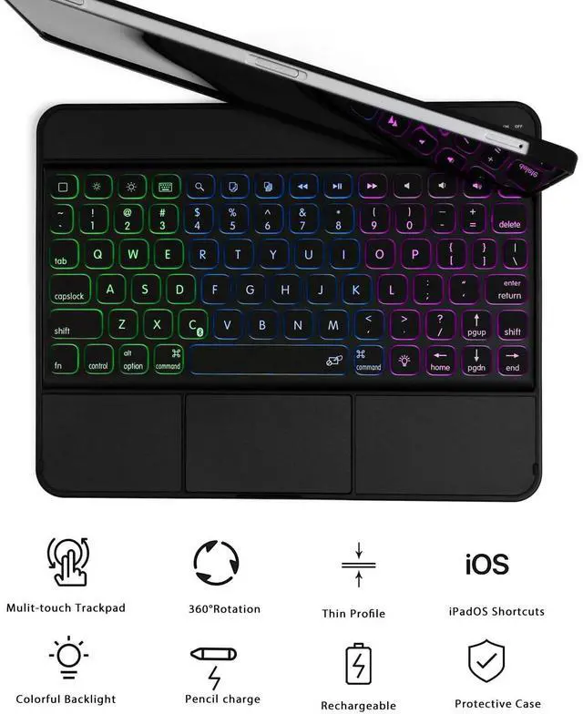 Please note that this keyboard case is designed exclusively for iPad Air 11 inch (M2) 2024, iPad Pro 11 inch 4th 2022 3rd 2021 2nd 2020 1st 2018 generation and for ipad air 10.9 4th 2020, 2022 10.9 -inch Air 5th Due to its innovative design, the keyboard is the case! The case combines a wireless keyboard with a built-in 360 degree rotating stand, 2 pounds weight without device in it make your tablet stable when using This tablet-protecting case is smart, sleek and resilient. Simply slot your device into the ultra-thin PC case to secure your device.