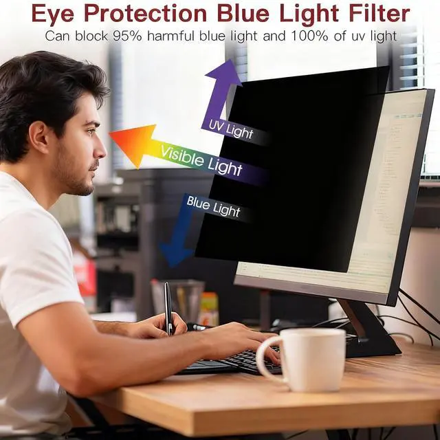 ^^ Triple Protection: Balancing Eye Health and Screen SafetyBlocks up to 92% of blue light, reducing eye irritation from long-term computer use and relieving eye fatigue. Provides 98% UV protection, preventing UV damage to both the screen and eyes. Offers 95% anti-glare performance, minimizing interference from ambient light reflection for clear viewing even in strong light. It also features anti-scratch properties to avoid screen scratches caused by daily bumps and friction.