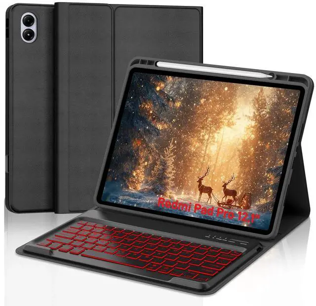 Compatibility for Keyboard CaseOnly Compatible with 12.1 inch Xiaomi Redmi Pad Pro 12.1 /Xiaomi Poco Pad 12.1 Released 2024. Not compatible with any other devices. Please kindly check the model number before purchase. Equipped with useful shortcut keys and compatible with IOS, Windows, and Android systems, provide you with ultimate convenience. ^^ Backlight KeyboardEquipping with 3 adjustable levels of brightness and 7 brightness levels make typing fun and easy in dark or bright environments. The lightweight Bluetooth keyboard is ultra-thin, it magnetically attaches to the case, and can be removed if not needed.