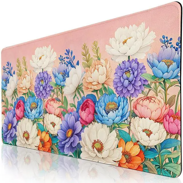 Cutebricase Desk Pad Mat with Peony Floral PatternAbout Cutebricase BrandOwn professional pattern design department. Committed to manufacturing high quality, stylish and attractive unique design. Focus to product comfortable and premium decoration, let you feel the nature and enjoy colorful lifeExtended XXL Large Mouse Pad SizePeony Flowers desk mat measures 31.5" 15.7", provides ample room to fit your gaming mouse, full-size mechanical keyboard, and other desk items. Keep your desk clean and uncluttered with the freedom to configure your setup as desired. Perfect for gamers who use a lower DPI or need more room to maneuver.
