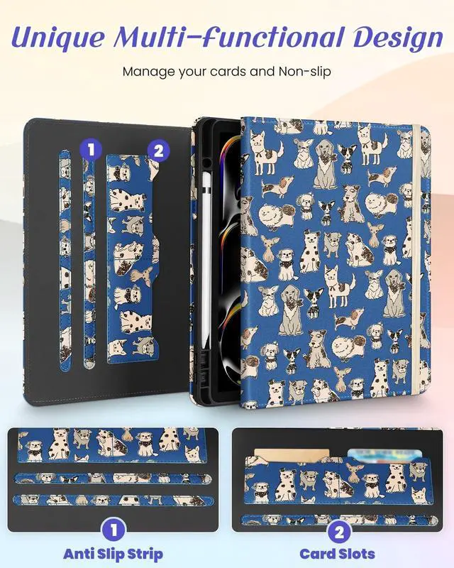 Multi-Functional Design: This for iPad Pro case 13 inch M4 2024 features an elasticized cord strap, which ensures that your tablet closes securely, provides slip or drop protection. It also has two card slots designed to hold your bank cards business cards and other cards
